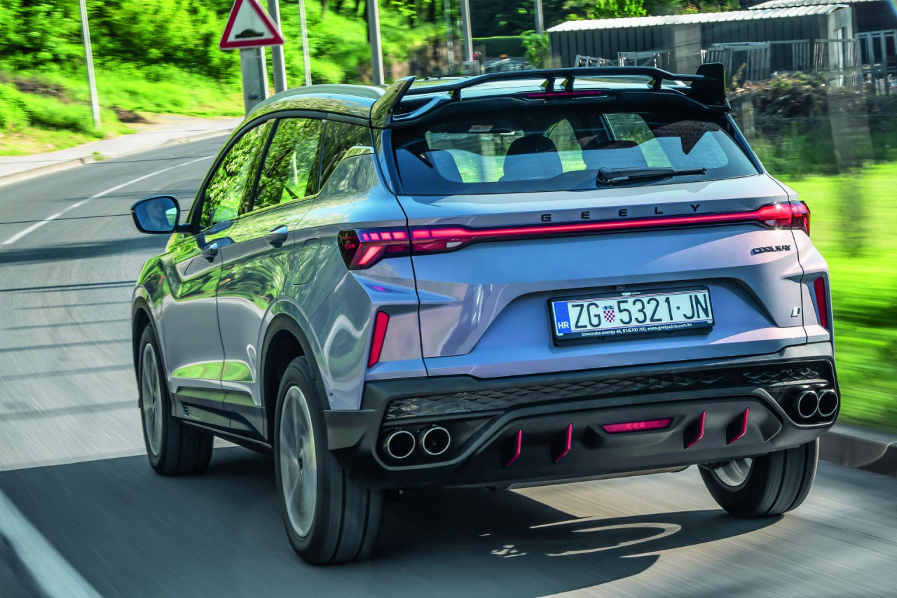 Šalu na stranu, Coolray se zbilja ima čime hvaliti, a jedan od aduta svakako mu je kvaliteta izrade. Ova, u međuvremenu čak dva puta redizajnirana izvedba (nakon posljednjeg, lanjskog redizajna kineski SUV je dobio novu, napadniju prednju masku i još poneki osvježeni detalj), ne polaže samo na izgled, koliko god karoserija izgledala zavodljivo i sportski skrojeno uz veliki stražnji spojler i difuzor te dva para ispušnih cijevi (i to pravih).